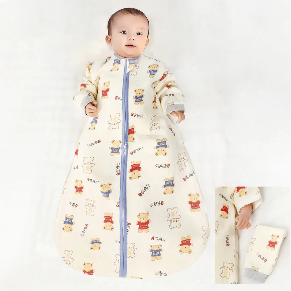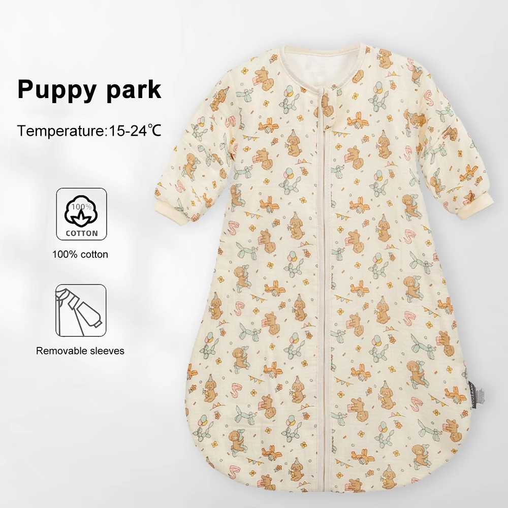 "ACCESSOIRE" Sac de couchage pour bébés de 0 à 24 mois, gaze de coton douce, respirant, fermeture éclair à 3 voies, chiot, chien, sac de couchage pour bébé avec manches amovibles