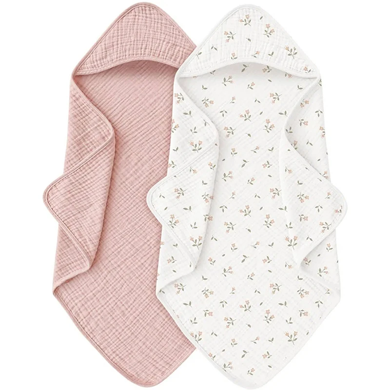 Serviettes à capuche pour bébé, 1 pièce, pour nouveau-né, mousseline de coton biologique, serviette de bain douce et absorbante pour garçons et filles