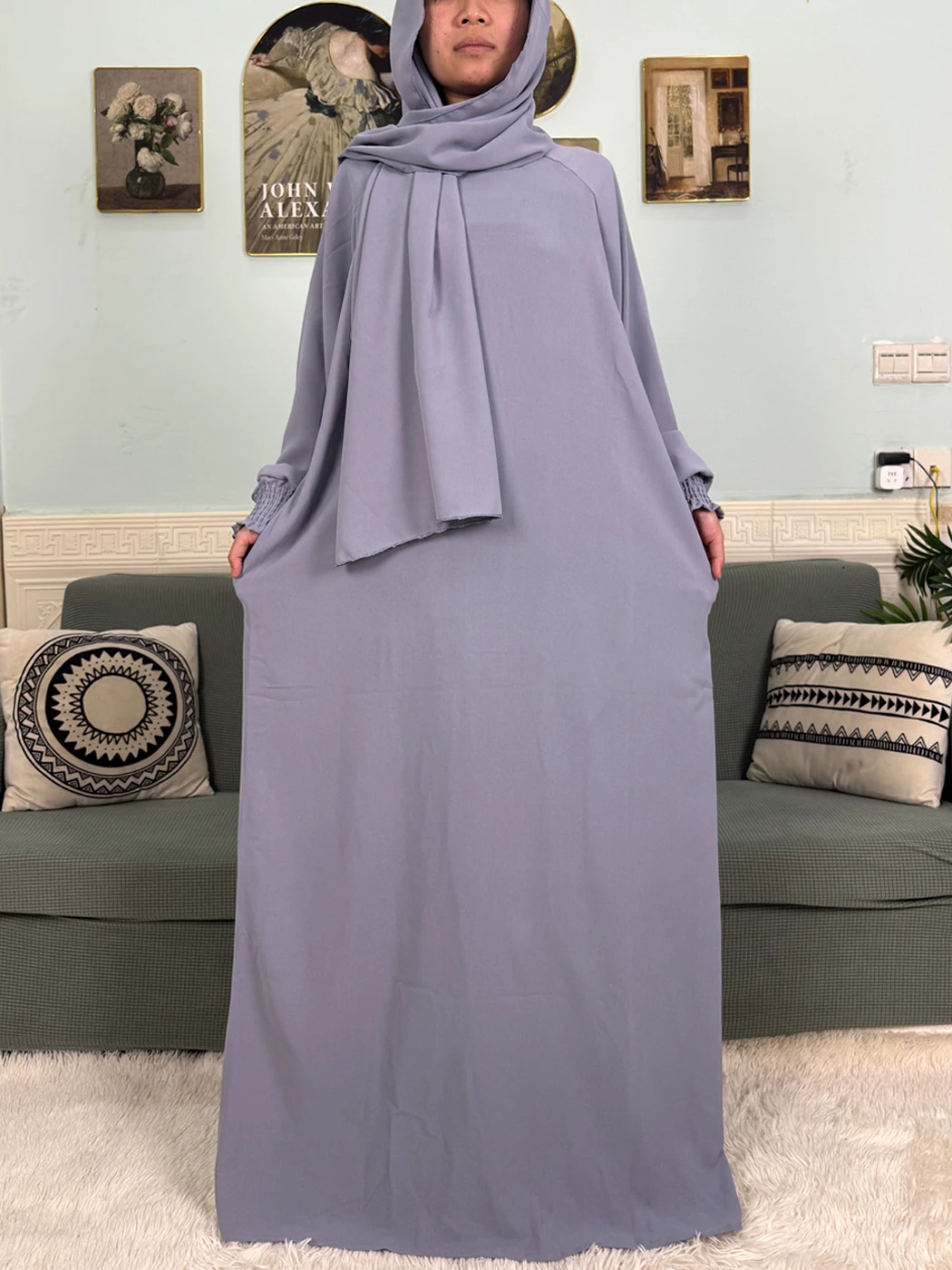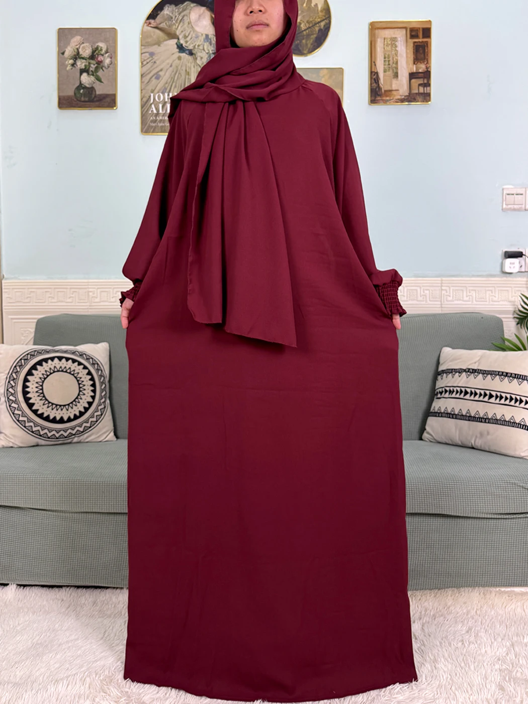 Pure o-neck cotton women abaya contact turban