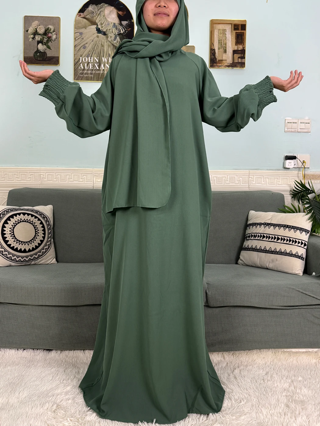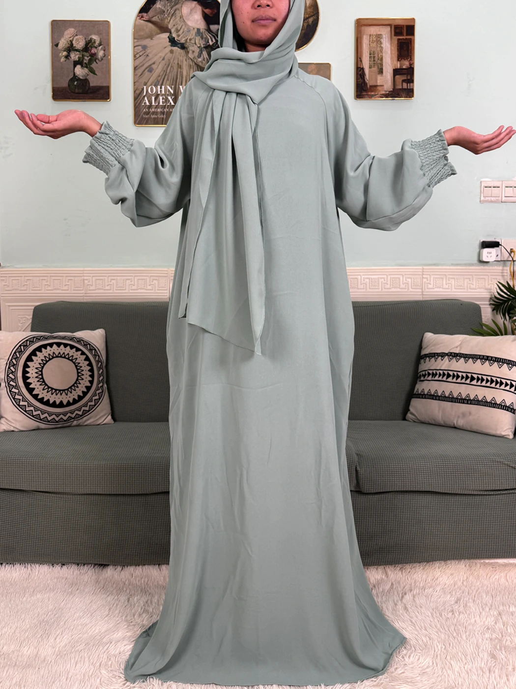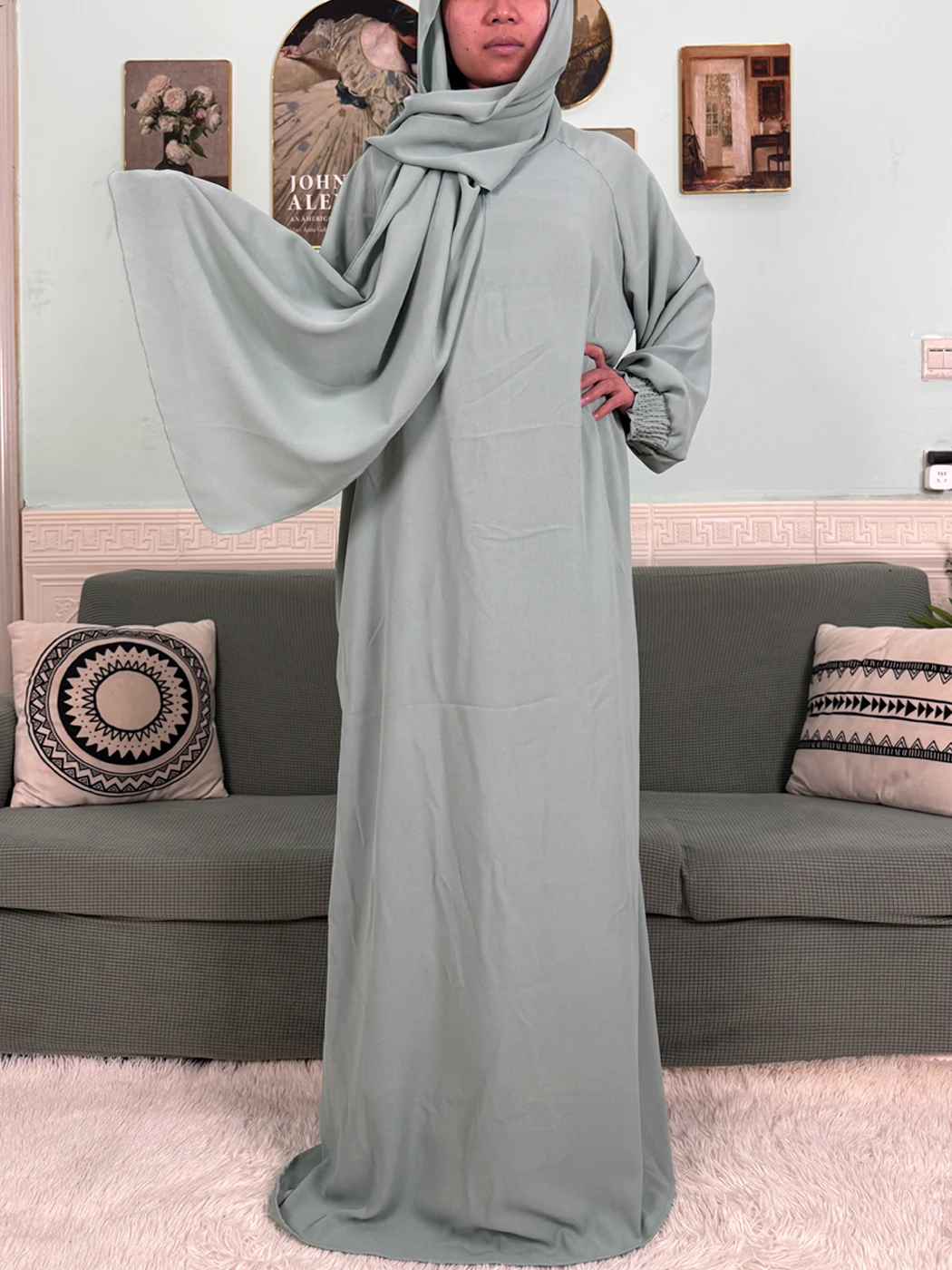"SPECIAL RAMADAN" Muslim Abaya Ramadan 2026 for Women, Loose-Fitting Prayer Dress in Pure Cotton; Muslim Abaya Ramadan 2026 For Women Pure Cotton Loose Prayer Dress with Elastic Cuffs, African Dress with Connected Hijabs and Scarf
