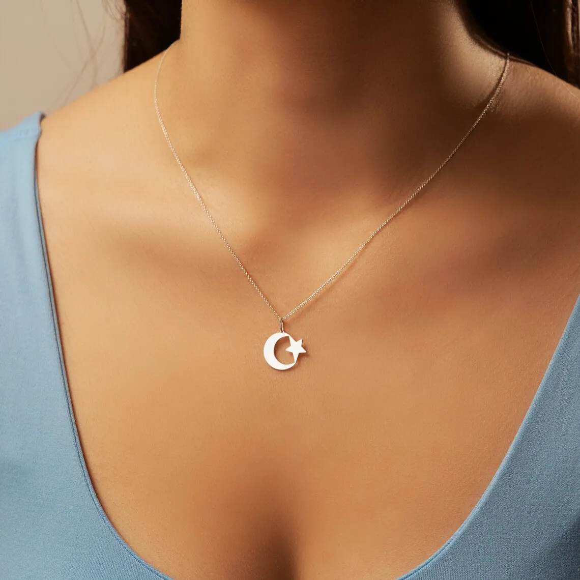 Acier inoxydable Croissant de Lune Étoile Collier pour Hommes Femmes Spirituel Islamique Musulman Amulette Pendentif Turc Religieux Bijoux