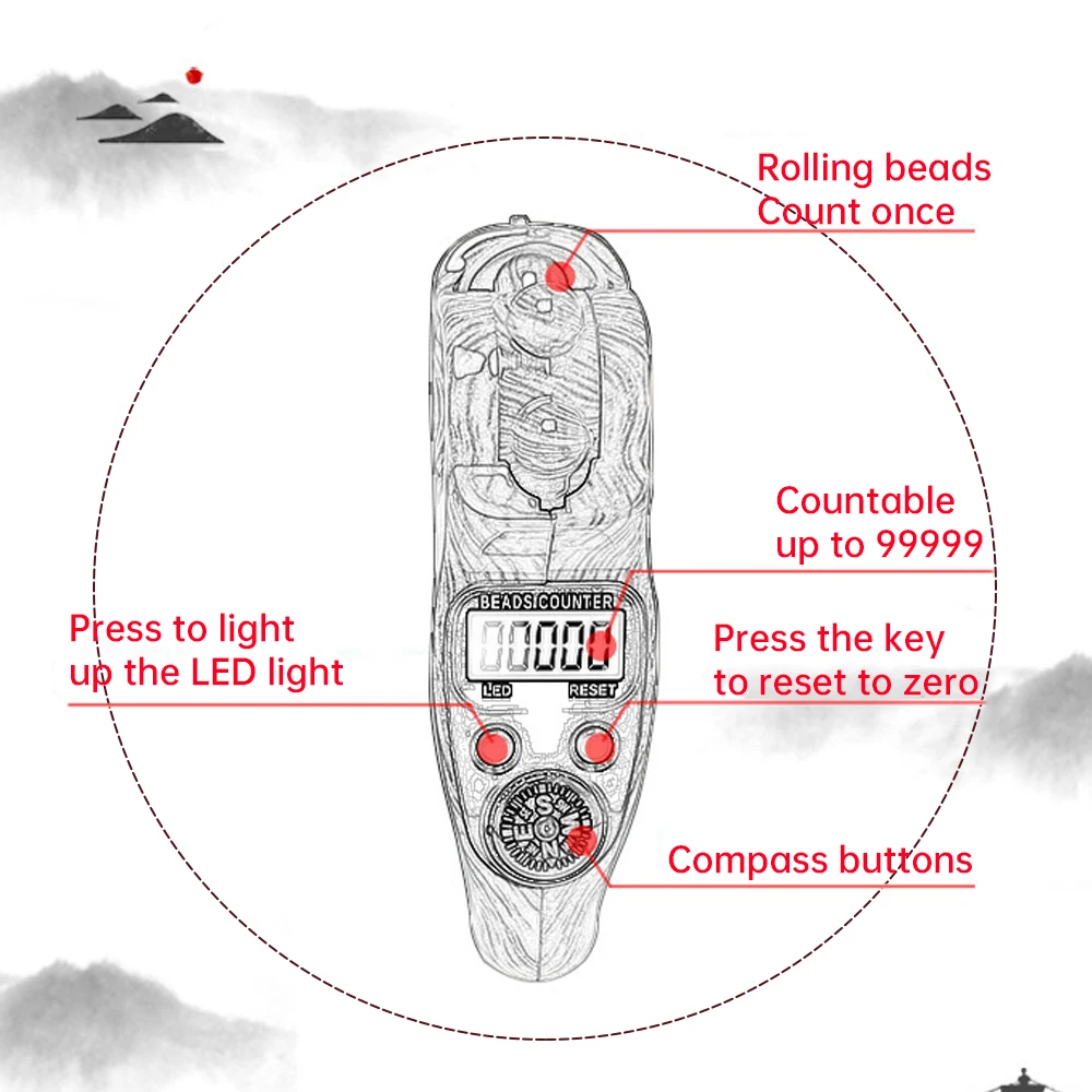 1. Practical design: Use this digital prayer bead counter to enhance your mental practice; Supports manual reset, can track up to 99999 counts, and comes with a convenient compass.