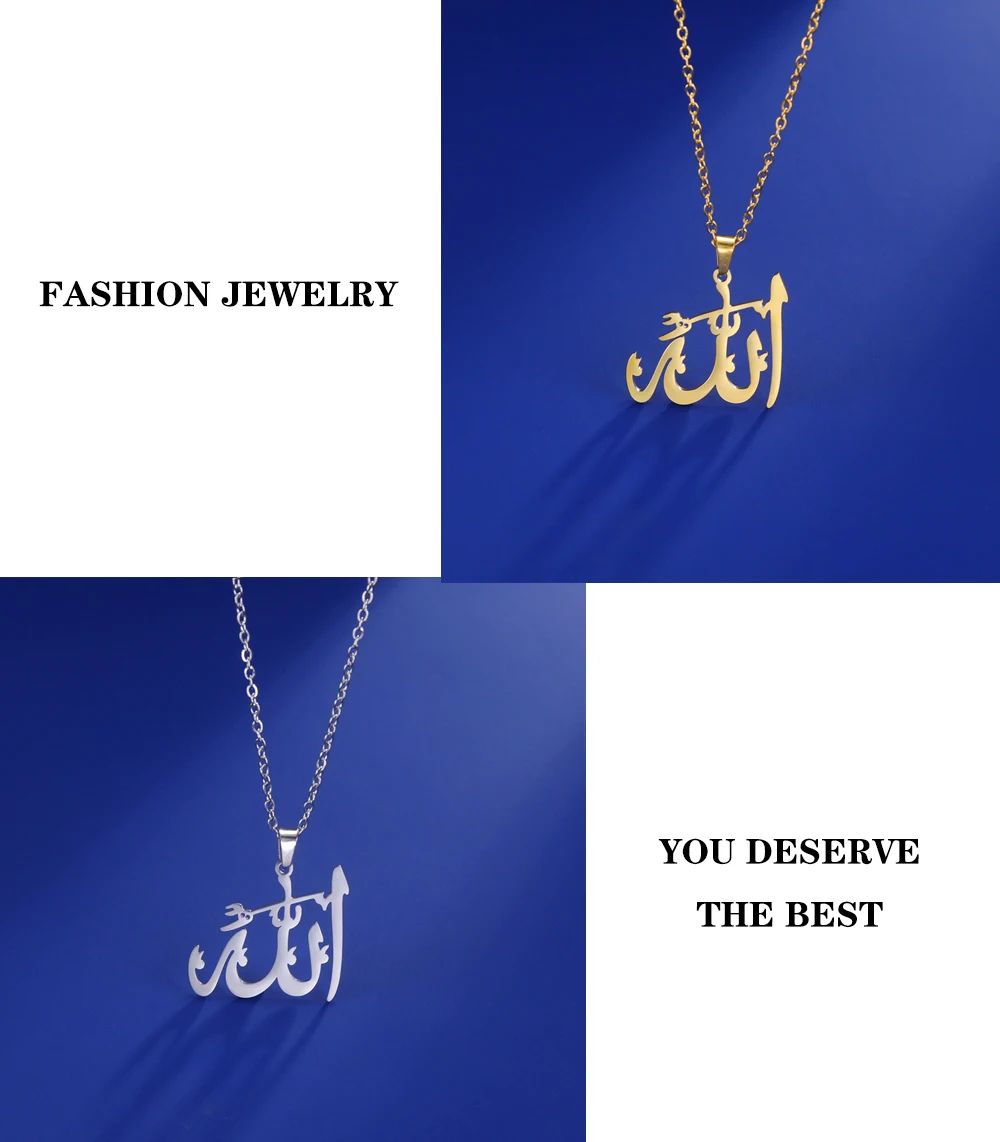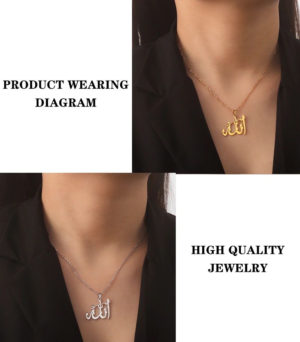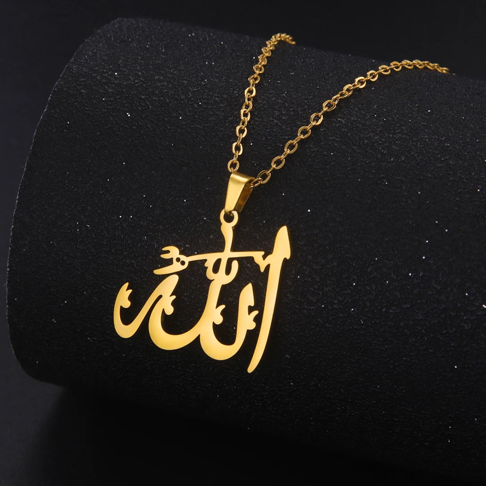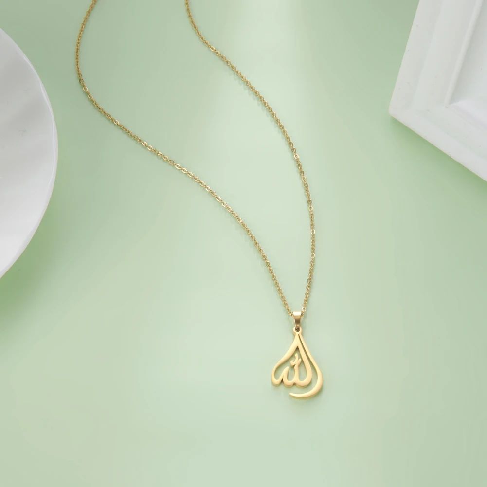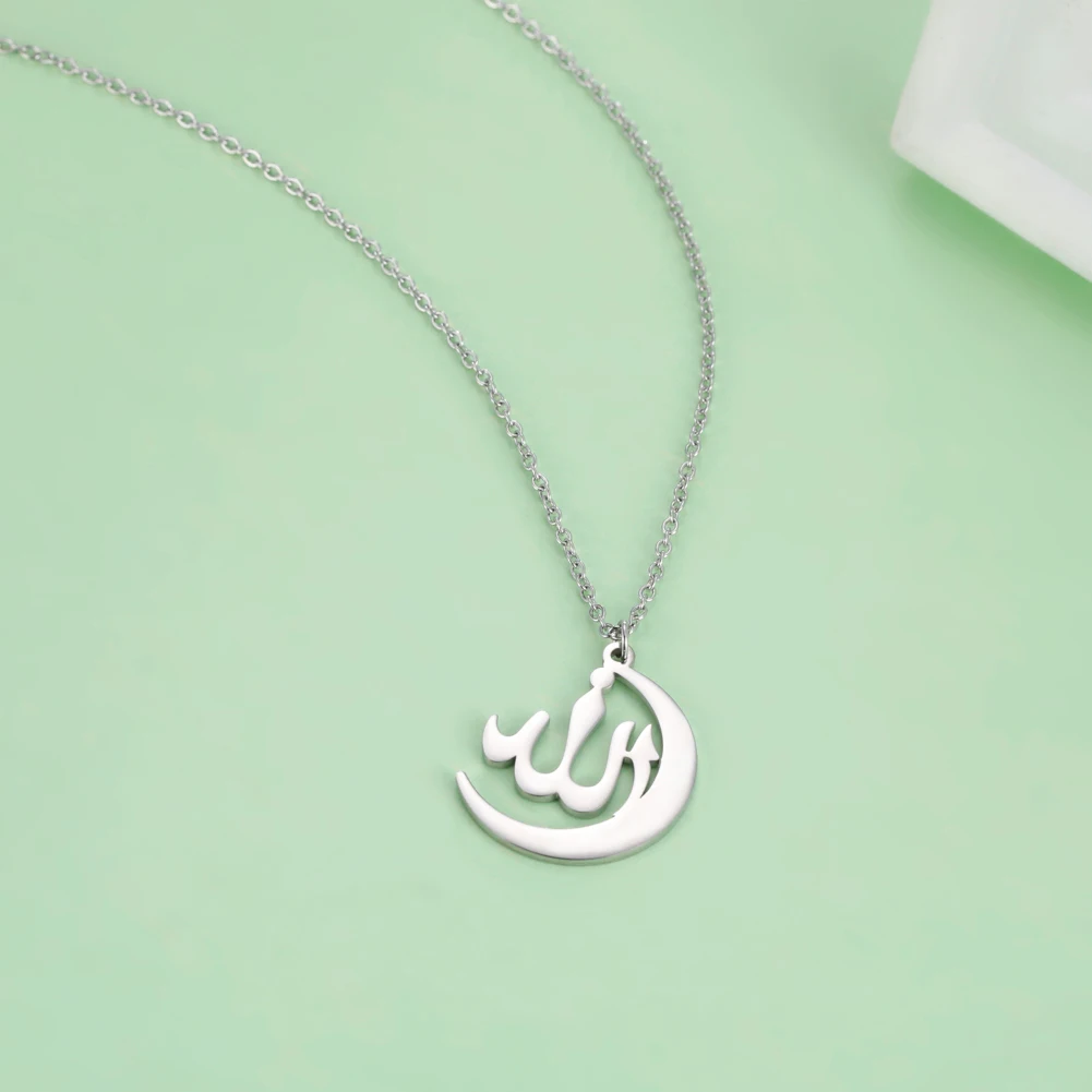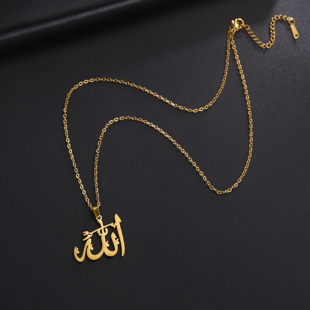 "SPECIAL RAMADAN" Lucktune-Collier pendentif Dieu arabe Allah Collier de chaîne islamique musulman en acier inoxydable pour hommes et femmes Cadeau de bijoux classiques