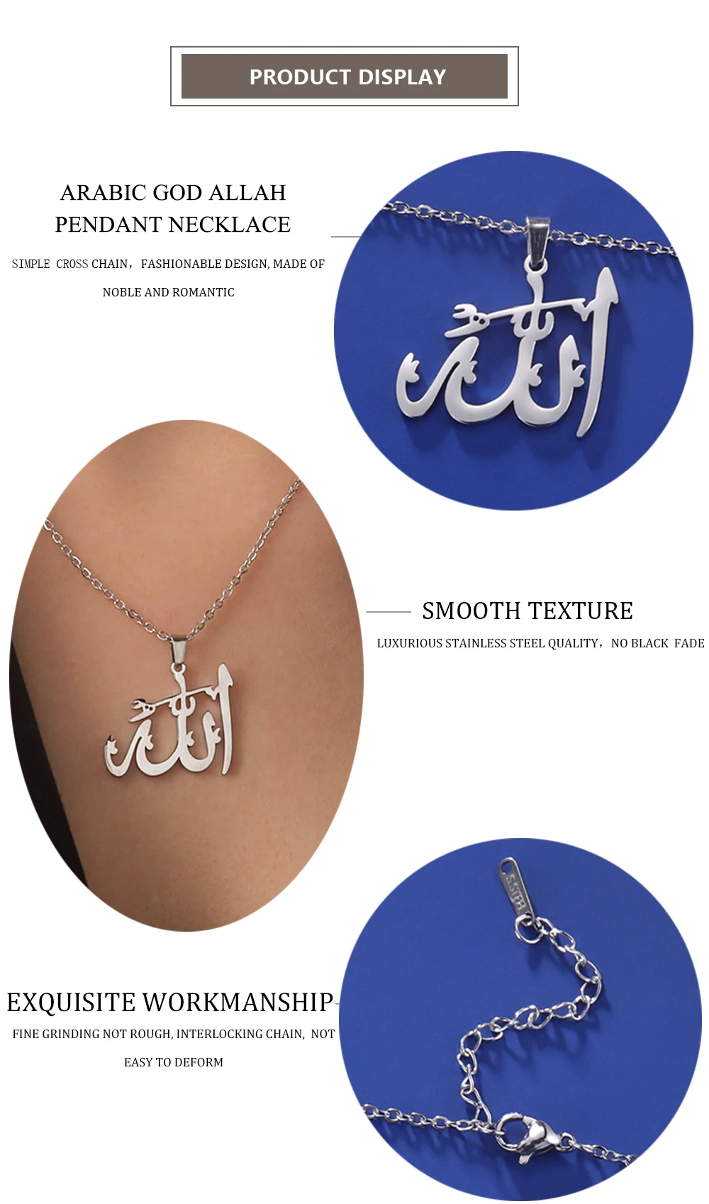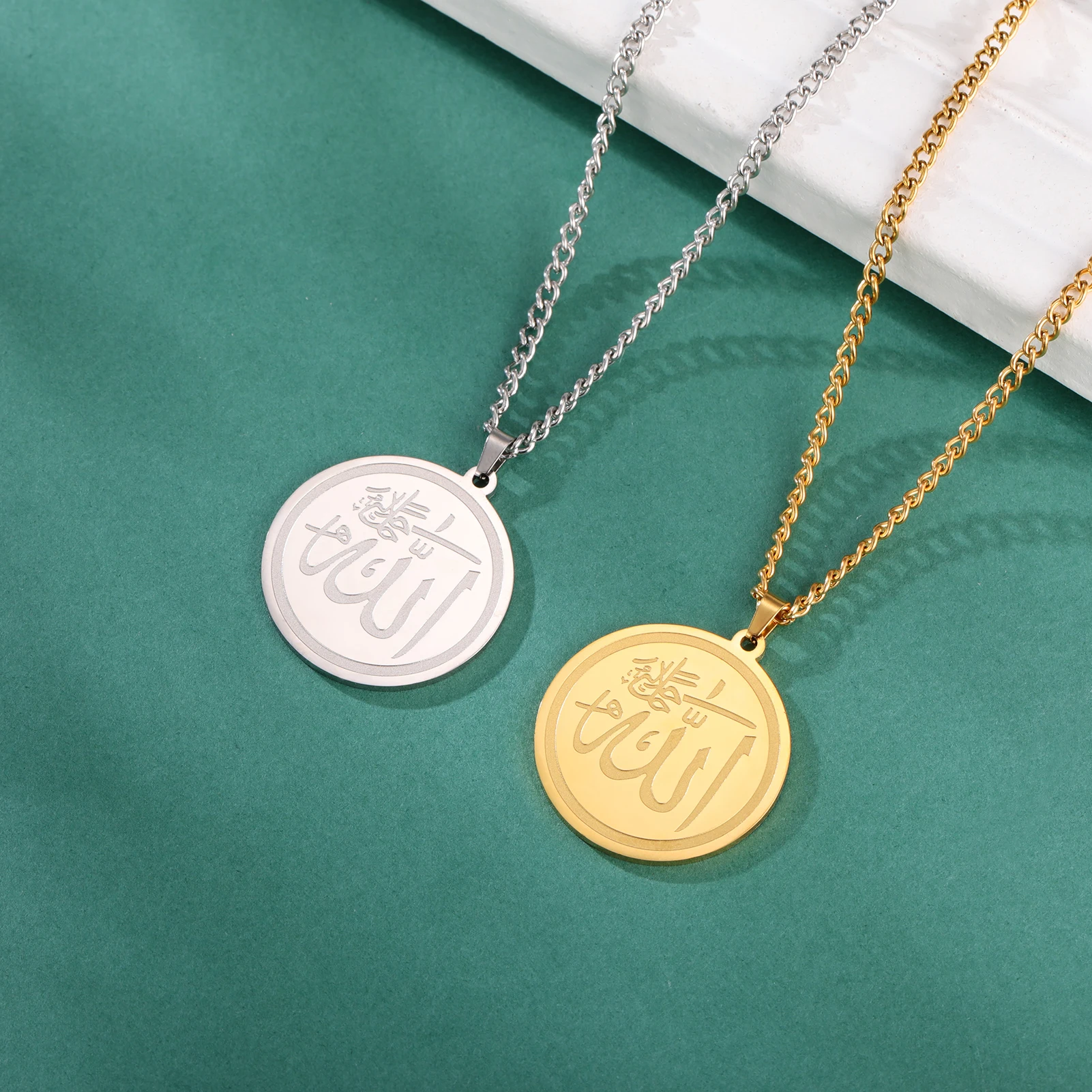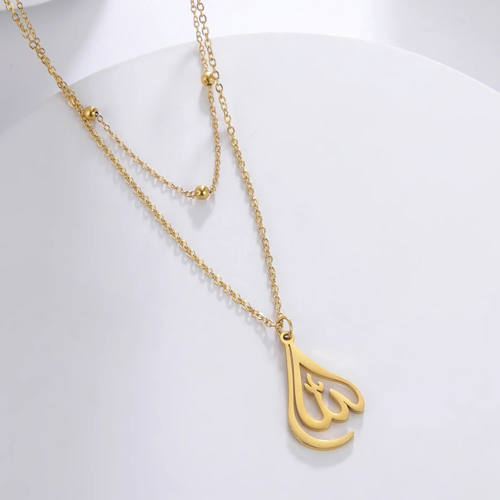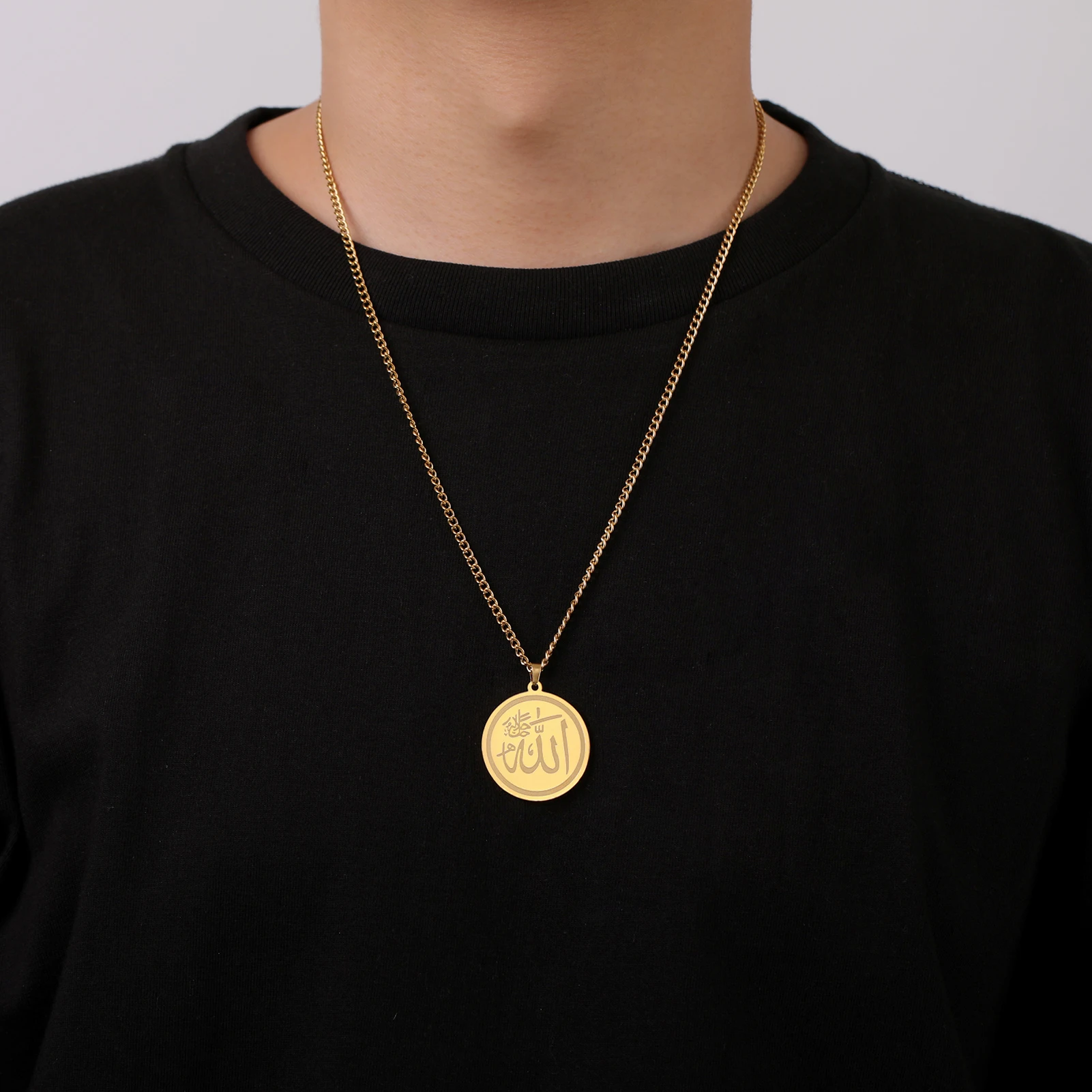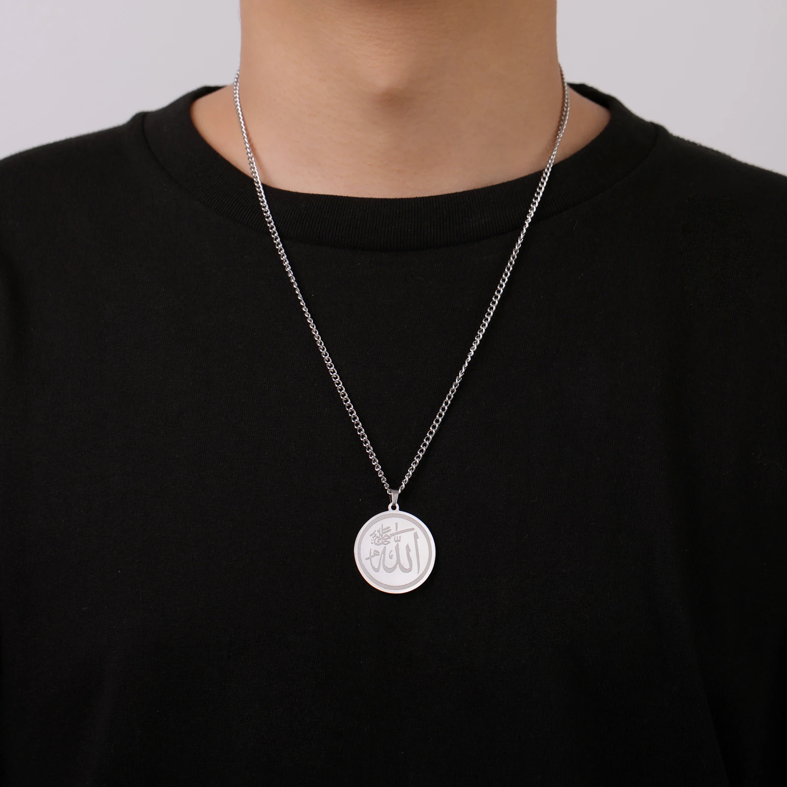 "SPECIAL RAMADAN" Lucktune-Collier pendentif Dieu arabe Allah Collier de chaîne islamique musulman en acier inoxydable pour hommes et femmes Cadeau de bijoux classiques