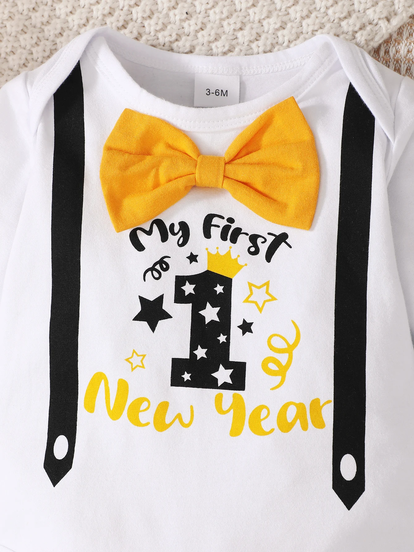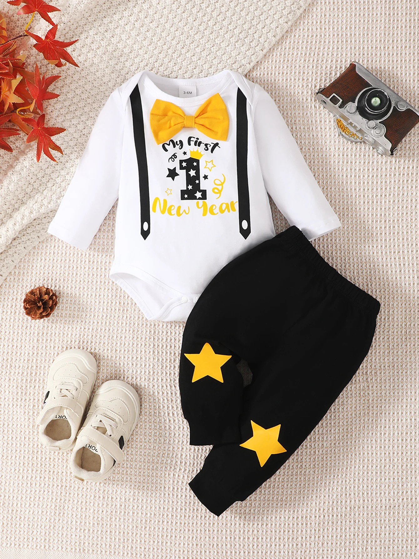 0-2 Year Old Newborn Baby Boys Spring And Autumn Round Neck Long Sleeved New Year Holiday Jumpsuit Fashion Set