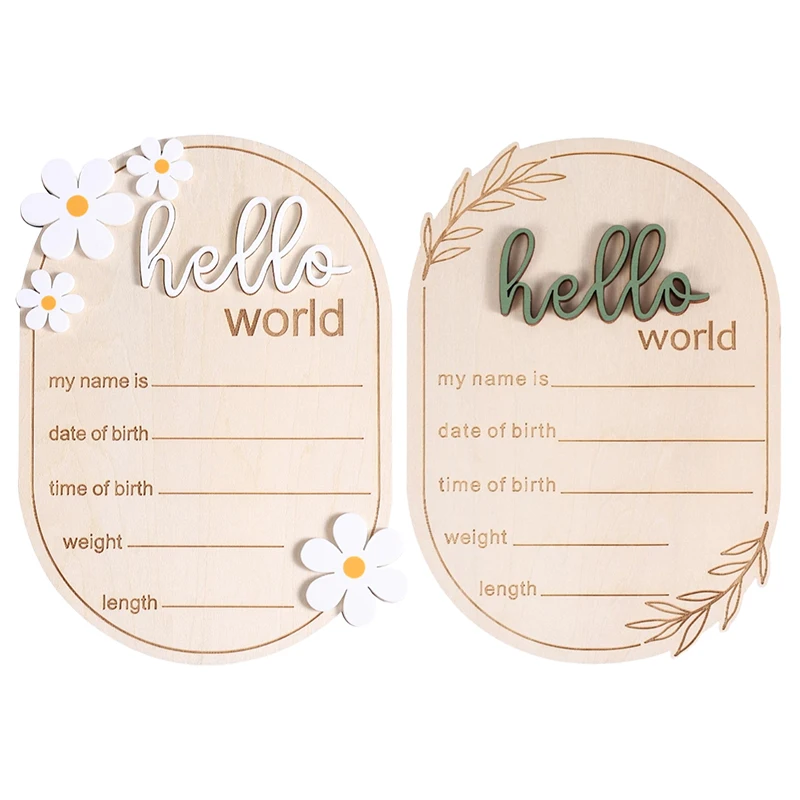 3,Exquisite Design: The sign is engraved with the name, date of birth, time, height and weight, and is decorated with three-dimensional flowers. It has exquisite carving craftsmanship, clear text and patterns, and is very delicate and cute.