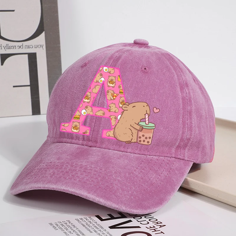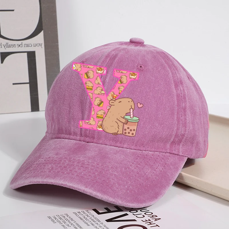 Capibara Baseball Cap for Women New Cute Capybara Letter A-Z Sun Hat Outdoor Sport Travel Sunbonnet Adult Fashion Headgear Gift