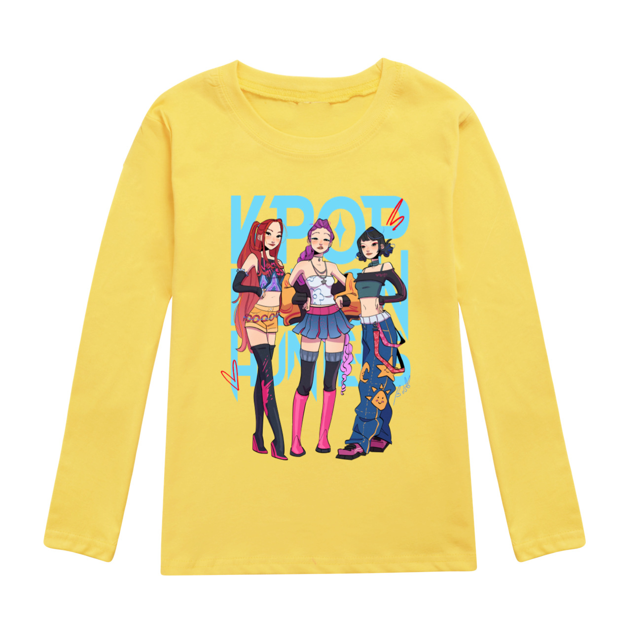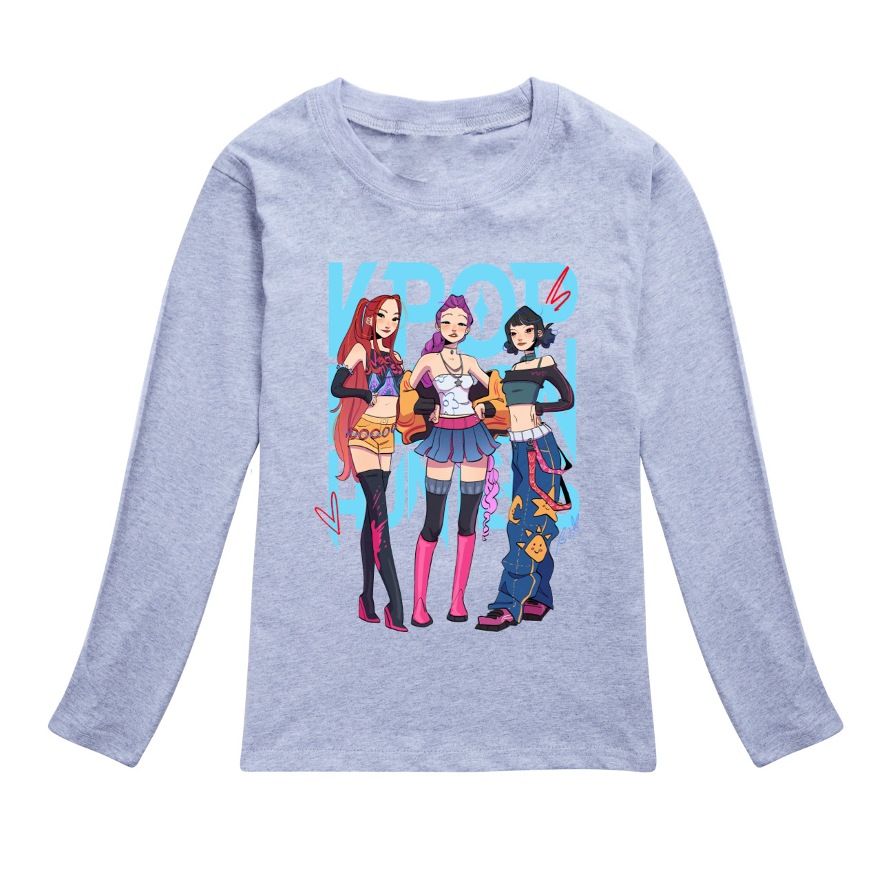 KPop Demon Hunters Kids T Shirt Kids Fashion Cartoon Casual Clothes Youth Boys Loose O-neck T-Shirts Girls Long Sleeve Tops